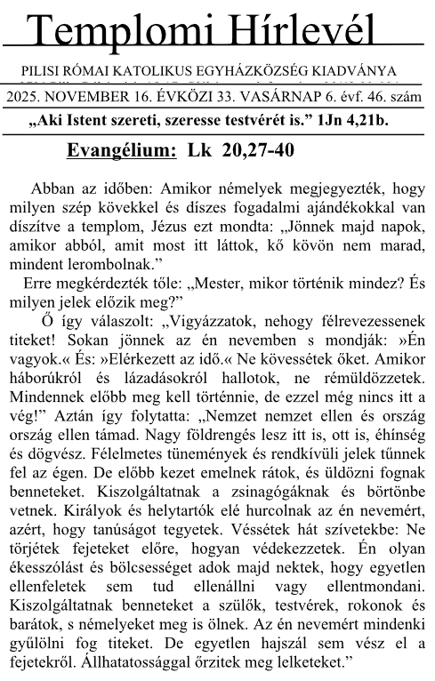 Templomi hírlevél – 2025.11.16 Szerző: Dóka Tamás Dátum: 2025.11.15. Kategória: Hírlevél Előző Balatoni nyári tábor 2025 támogatás Vélemény, hozzászólás? Válasz megszakításaAz e-mail címet nem tesszük közzé. A kötelező mezőket * karakterrel jelöltükHozzászólás * Név * E-mail cím * Honlap A nevem, e-mail címem, és weboldalcímem mentése a böngészőben a következő hozzászólásomhoz.